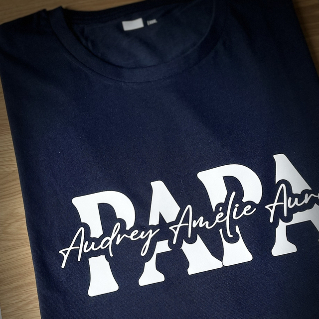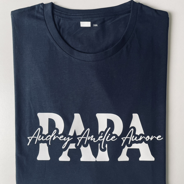 TEE shirt personnalisable avec le mot Papa et les prénoms des enfants